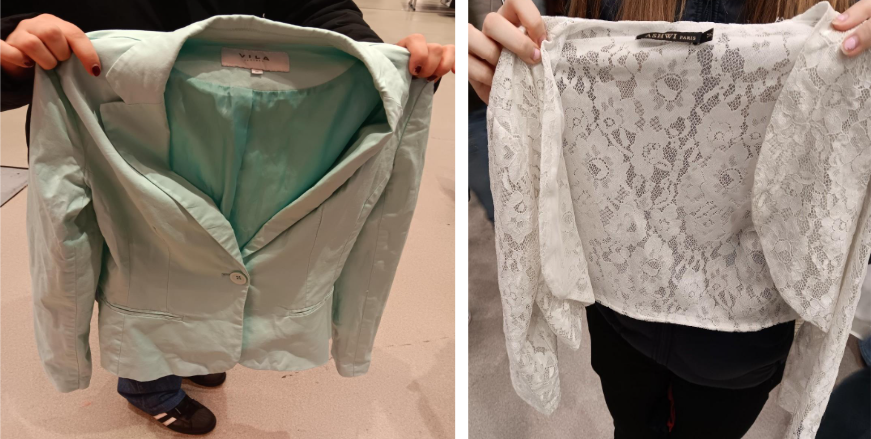 Hetken päästä käyn jututtamassa työ- ja yliopistoikäisiä Sofiaa, Annastiinaa ja Pauliinaa. Tapahtuman idea ja maksuttomuus saavat kolmikolta paljon kehuja. Kaikki kolme ovat tuoneet tapahtumaan omia vaatteitaan, joko aikaisemmin tai tapahtumapäivänä. Myös uusia vaate- ja asustelöytöjä on tehty paljon.